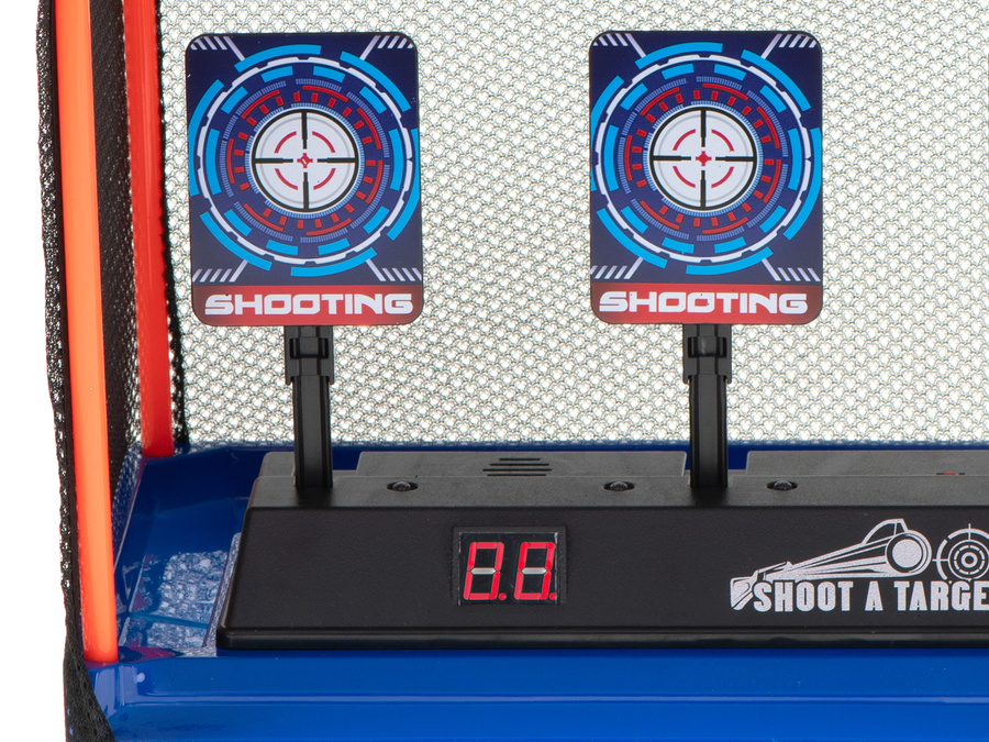W tarczę można strzelać z pistoletów na piankowe strzałki czy kulki. Posiada ona efekty świetlne i dźwiękowe uatrakcyjniające zabawę. Po trafieniu możemy usłyszeć dźwięk tłuczonego szkła lub oklaski. Dodatkowo na tarczy został umieszczony dwucyfrowy licznik punktów. Każdy cel po trafieniu kładzie się do tyłu. Po zestrzeleniu trzech tarcz otrzymujemy 1 punkt, po czym wszystkie podnoszą się automatycznie do góry.