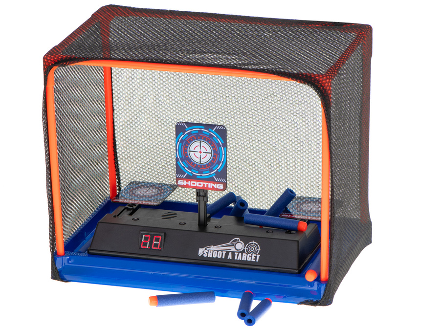 - Elektroniczna tarcza do strzelania z licznikiem punktów. Idealna dla małych miłośników strzelania. Uczy celności i skupienia. W zestawie: tarcza, siatka do samodzielnego złożenia. Zasilanie: 3 baterie 1.5V AA (brak w zest.). Wym. tarczy: 31x20x26cm.