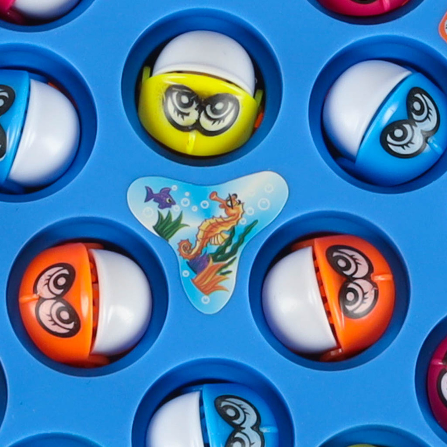 Koło z rybkami kręci się w rytm wesołej muzyki. Kolorowe pojemniczki na złowione rybki są wyjmowane.