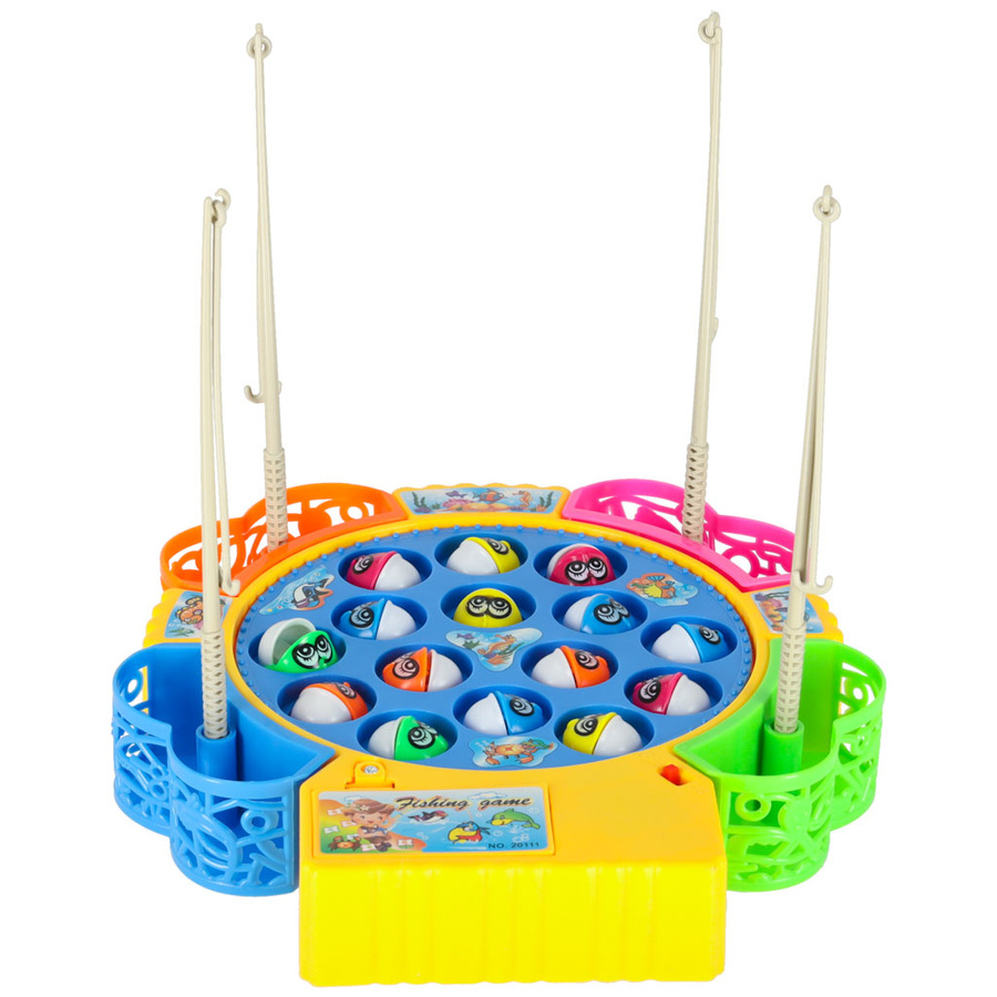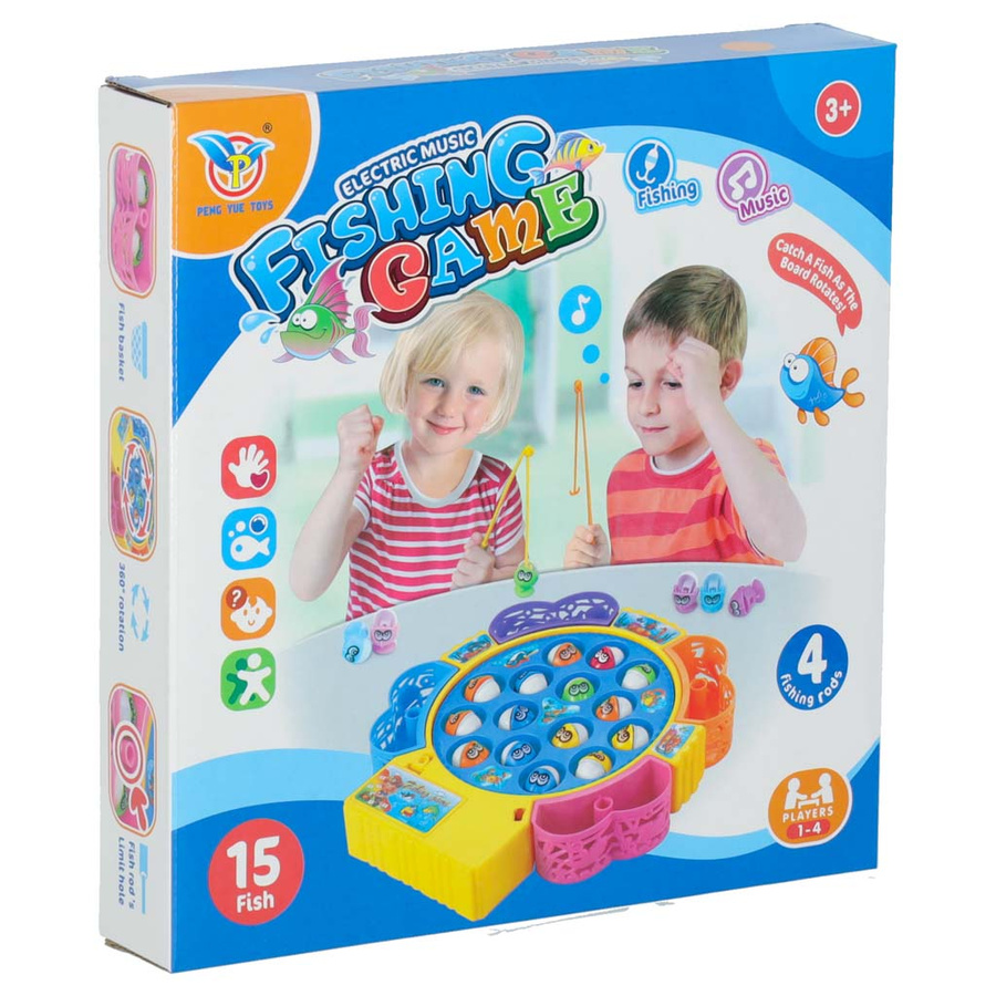 - Rodzinna gra łowienie rybek. W zestawie: podstawka, 15 rybek i 4 wędki. Zasilanie: 2 baterie AA 1,5V (brak w zestawie). Wymiary podstawy: 21x20x3,5cm.