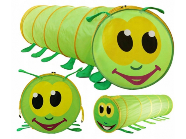 • Tunel do zabawy w formie zielonej gąsienicy, to wyjątkowy składany plac zabaw dla dzieci. Doskonale sprawdzi się zarówno w ogrodzie, jak i w pokoju. Posiada pokrowiec z poręcznym uchwytem.