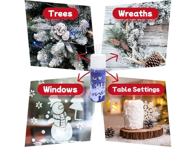Ten produkt jest wszechstronny i nadaje się do różnych zastosowań. Możesz go używać zarówno na powierzchniach płaskich, jak i na dekoracjach trójwymiarowych, aby stworzyć piękny efekt śniegu.