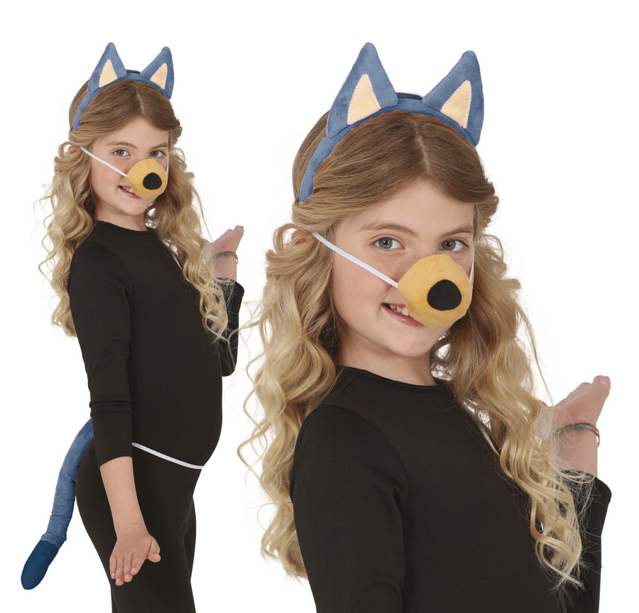 Zestaw piesek niebieski Bluey opaska, ogon i nosek