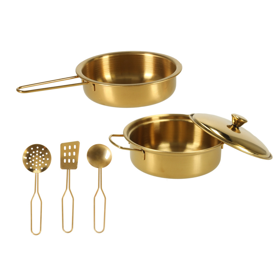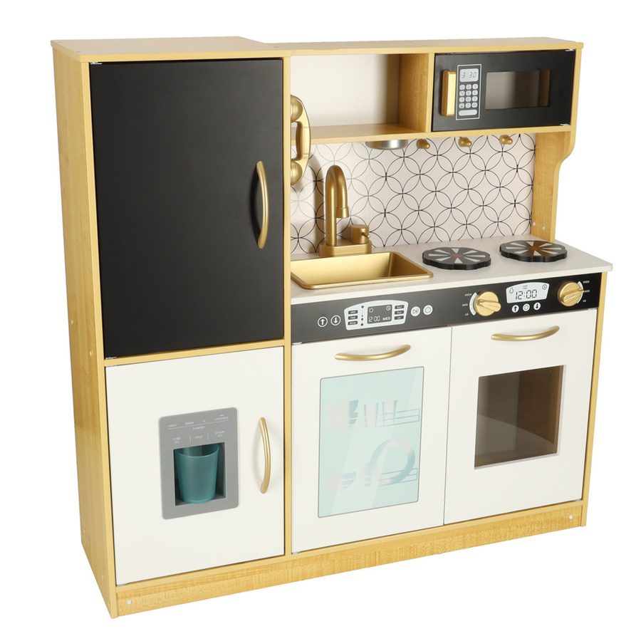 Kuchnia dla dzieci drewniana LULILO ORO z lodówką tablicą kredową złota