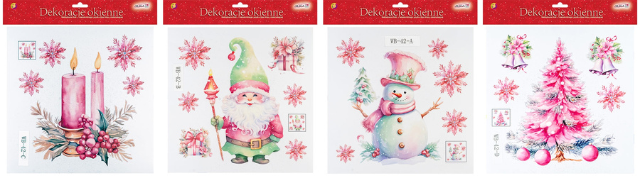 WITRAŻ Świąteczny Bożonarodzeniowy naklejki na szybę różowe mix wzorów