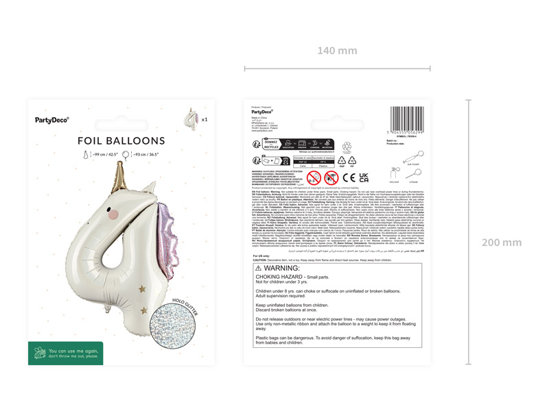 Uroczy i efektowny balon foliowy w kształcie cyfry 4 z motywem jednorożca to idealna dekoracja na urodziny, roczki, sesje zdjęciowe i przyjęcia tematyczne. Pastelowe kolory i holograficzna powierzchnia pięknie mieni się w świetle, tworząc magiczny, bajkowy efekt. Duży rozmiar (93 cm) sprawia, że balon prezentuje się wyjątkowo okazale i przyciąga uwagę wszystkich gości.