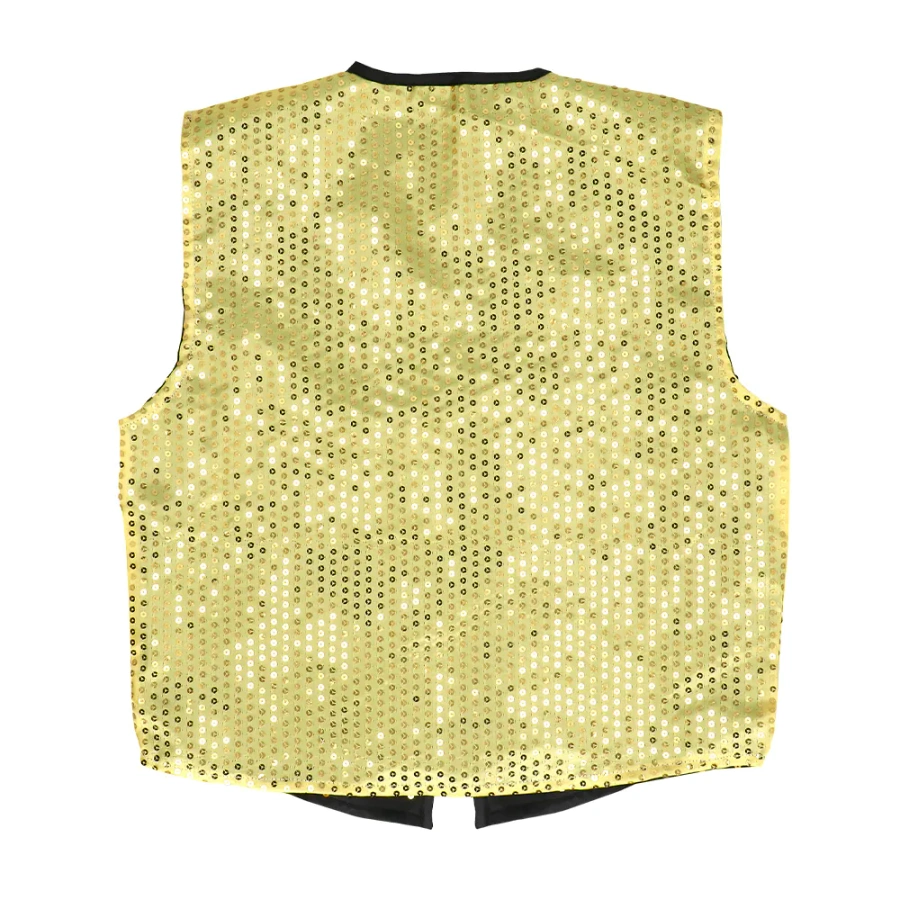 Cekinowy zestaw składający się z kamizelki i muchy w złotym kolorze stanowi uzupełnienie przebrania, jak również służy jako samodzielny imprezowy akcent stroju.