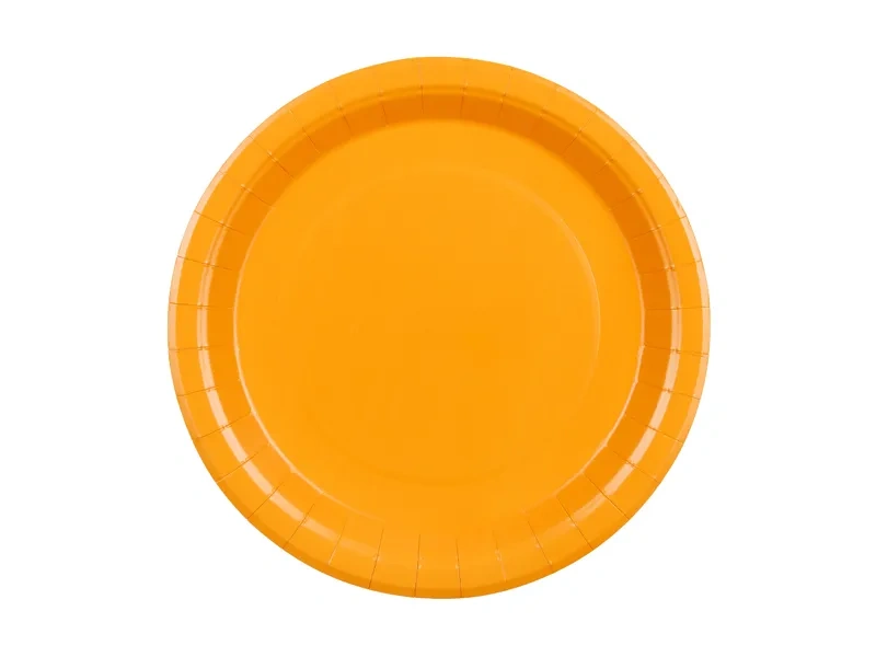 - Zestaw talerzyków papierowych w kolorze pomarańczowym.