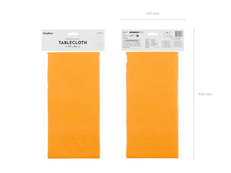 - Papierowy, prostokątny obrus jednokolorowy pomarańczowy.