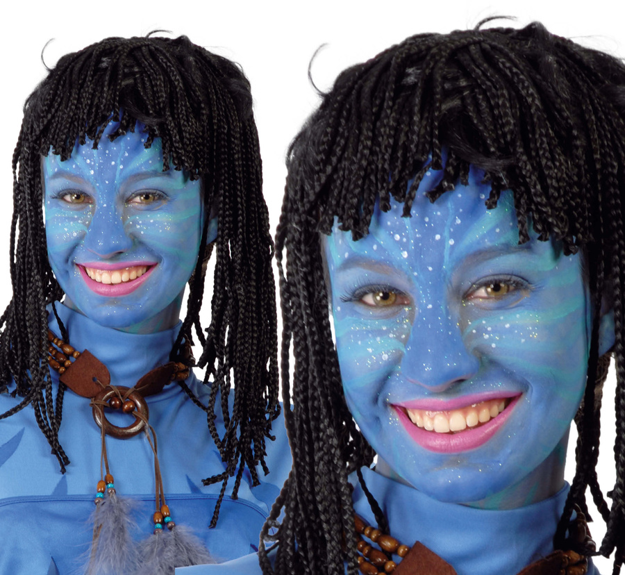 Efektowna czarna peruka z dredami inspirowana stylem Avatar, idealna do stworzenia wyjątkowej, egzotycznej stylizacji. Doskonały dodatek do kostiumów fantasy, cosplayu oraz tematycznych imprez, który natychmiast przyciąga uwagę i podkreśla charakter przebrania.