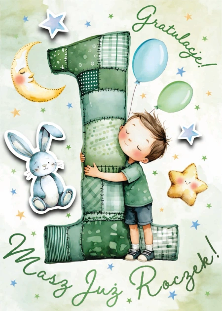 Kartka urodzinowa na Roczek dla chłopca 1 szt.