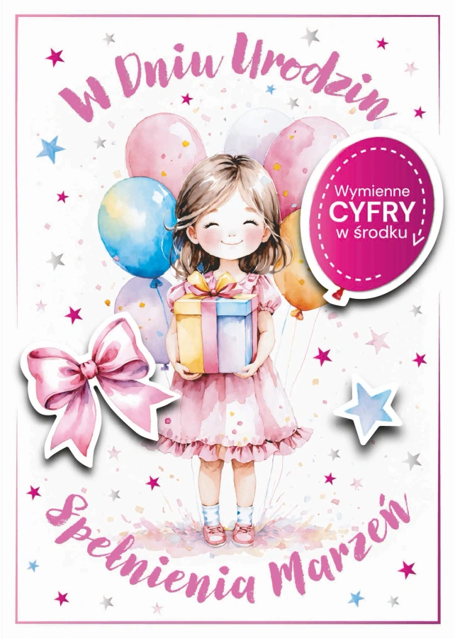 Kartka urodzinowa dla dziewczynki wymienne cyfry 1 szt.