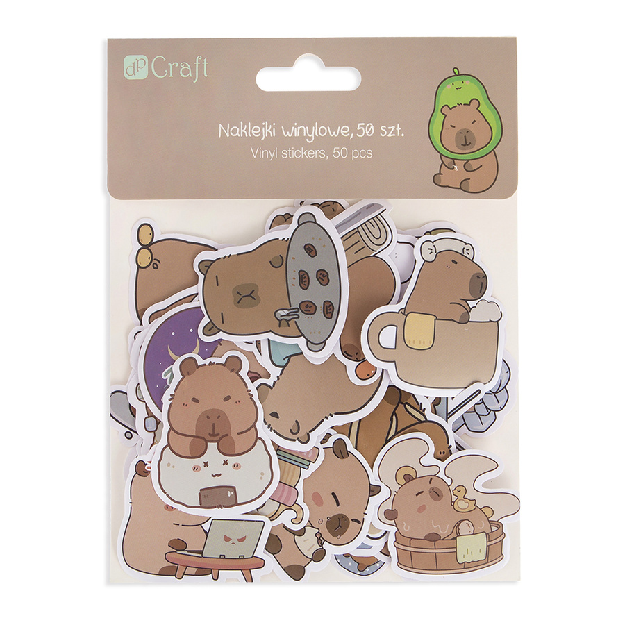 - Naklejki winylowe, wodoodporne w uroczych wzorach kapibary.