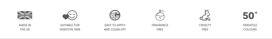 Farby Snazaroo są produkowane ręcznie w Anglii. Są bezpieczne i łatwe w użyciu. Produkowane na bazie wody i barwników najwyższej jakości, są łatwe w nakładaniu (zwilżoną gąbką) i zmywaniu (wodą z mydłem).
