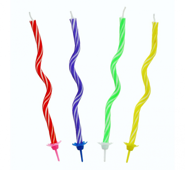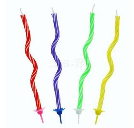 Świeczki urodzinowe spirale z podstawkami 12 szt