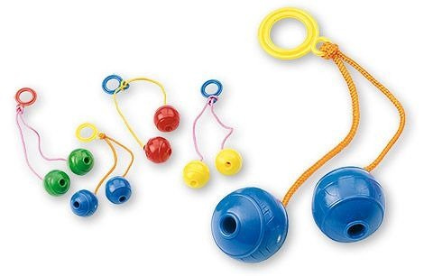 Składa się z dwóch kulek oraz obręczy połączonych sznurkiem.