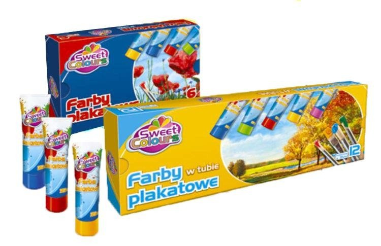 Farby plakatowe w opakowaniu 6 tubek w każdej 35 ml