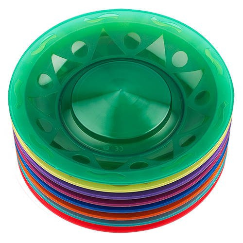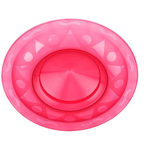 Ozdobny talerz cyrkowy wykonany z transparentnego, średnio twardego plastiku.