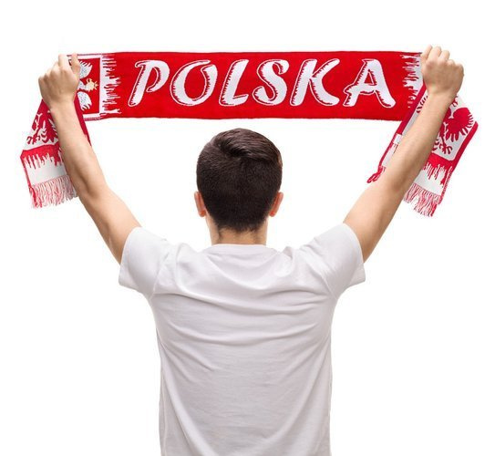 Niezbędny atrybut prawdziwego kibica, biało czerwony szalik z napisem Polska.