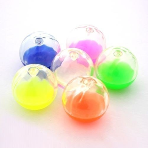 - Wypełniona jest kolorowym płynnym sylikonem dzięki któremu piłka pozostaje stabilna przy wysokich rzutach. Jest doskonałą alternatywą kuli akrylowej. Idealna do nauki trików.