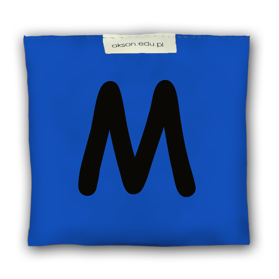 Woreczek gimnastyczny z nadrukiem z literką M, szkolny Akson to wyjątkowa pomoc w czasie zabaw animacyjnych, dydaktycznych i zajęć korekcyjno-ruchowych.