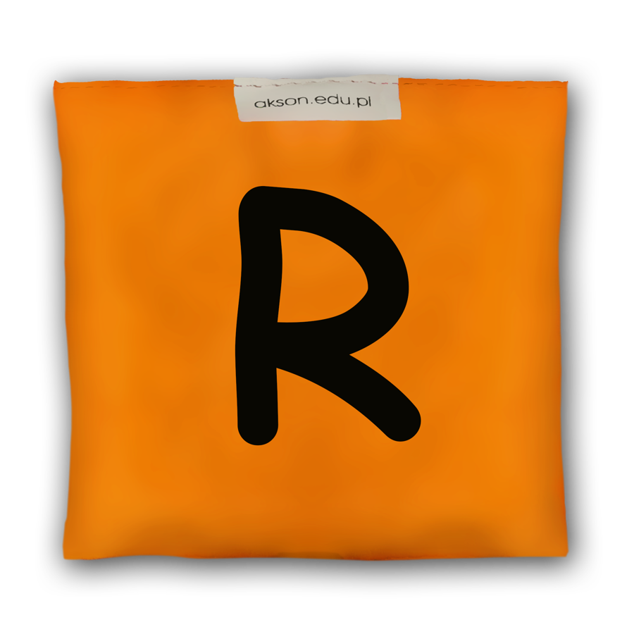 Woreczek gimnastyczny z nadrukiem z literką R, szkolny Akson to wyjątkowa pomoc w czasie zabaw animacyjnych, dydaktycznych i zajęć korekcyjno-ruchowych.