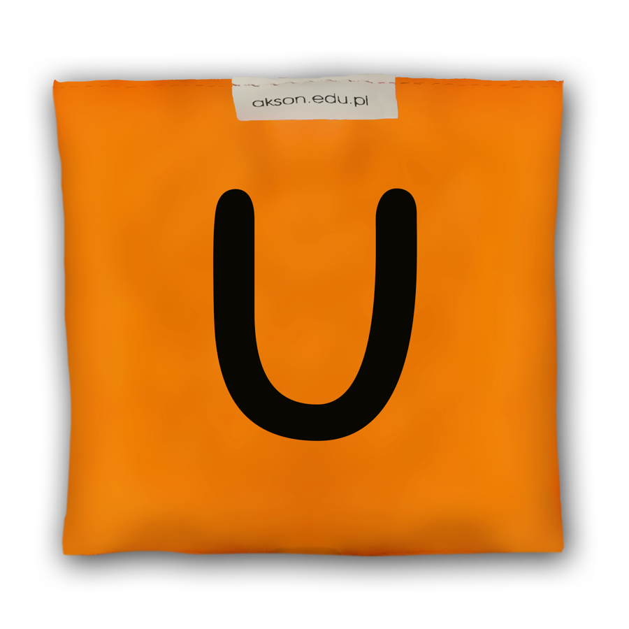 Woreczek gimnastyczny z nadrukiem z literką U, szkolny Akson to wyjątkowa pomoc w czasie zabaw animacyjnych, dydaktycznych i zajęć korekcyjno-ruchowych.