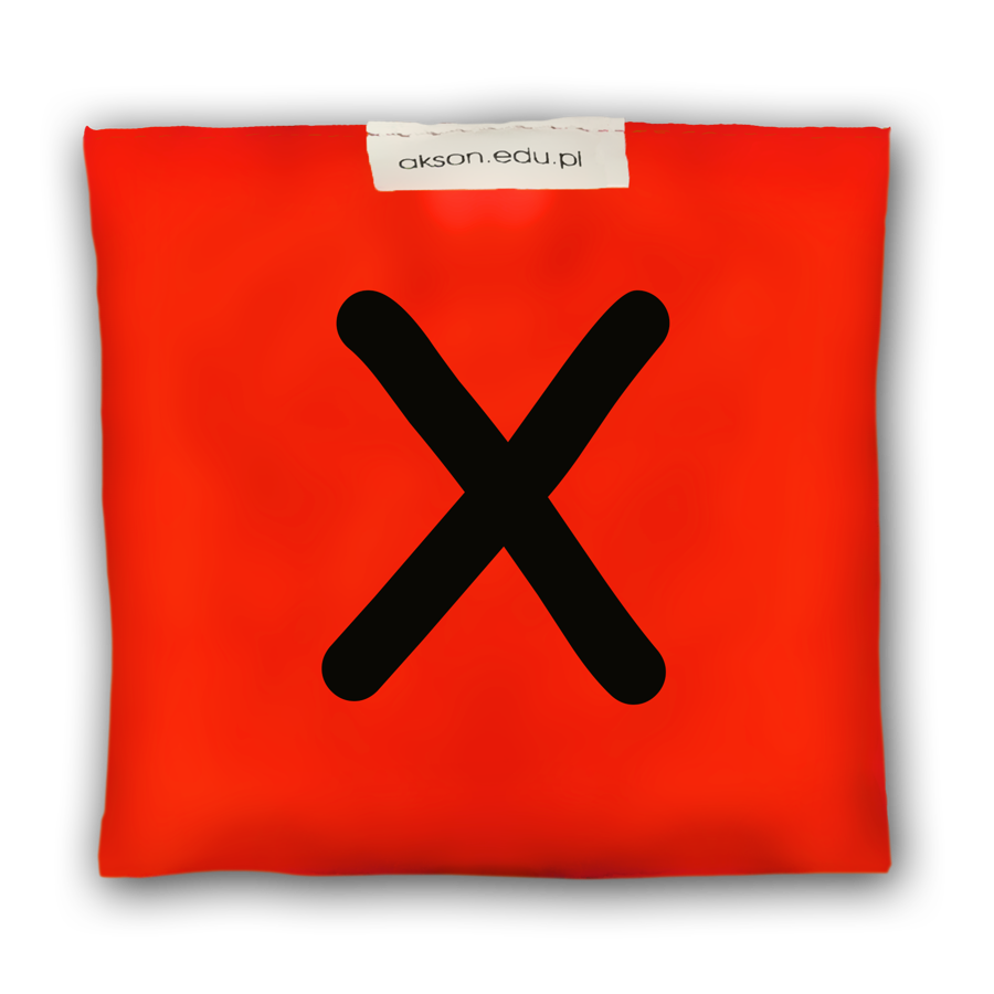Woreczek gimnastyczny z nadrukiem z literką X, szkolny Akson to wyjątkowa pomoc w czasie zabaw animacyjnych, dydaktycznych i zajęć korekcyjno-ruchowych.