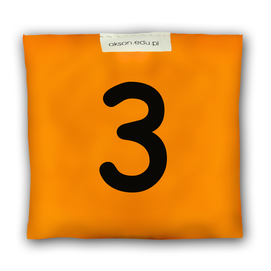 Woreczek gimnastyczny z nadrukiem z cyferką 3, szkolny Akson to wyjątkowa pomoc w czasie zabaw animacyjnych, dydaktycznych i zajęć korekcyjno-ruchowych.