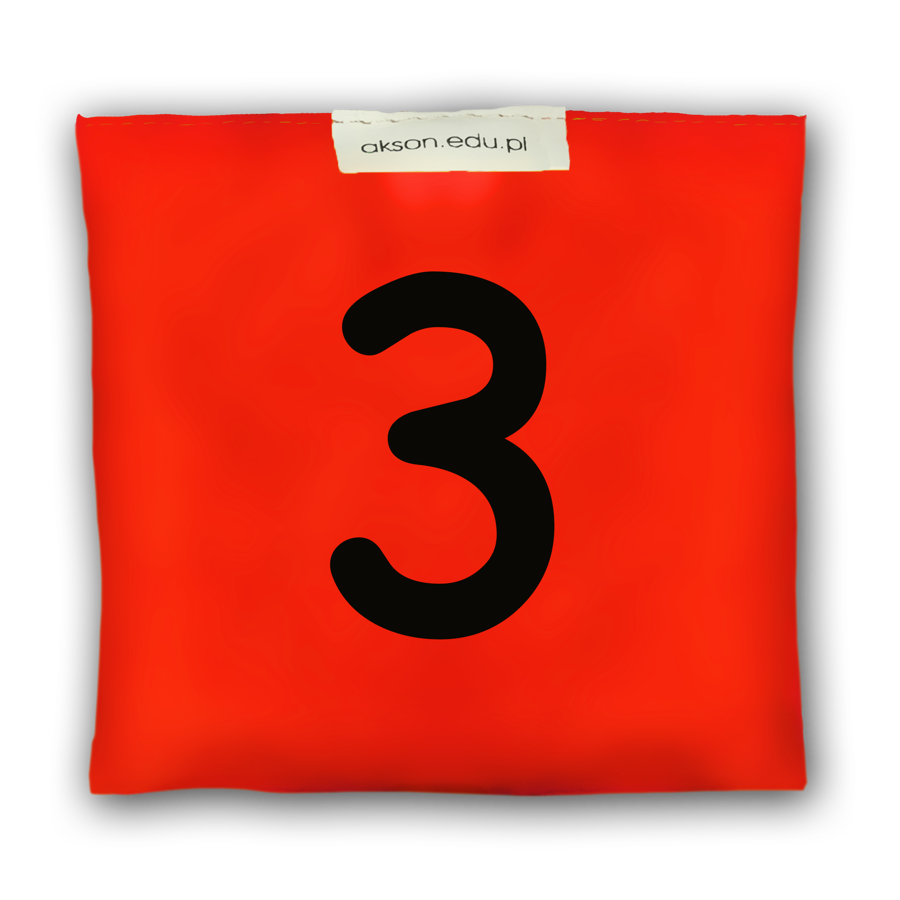 Woreczek gimnastyczny z nadrukiem z cyferką 3, szkolny Akson to wyjątkowa pomoc w czasie zabaw animacyjnych, dydaktycznych i zajęć korekcyjno-ruchowych.