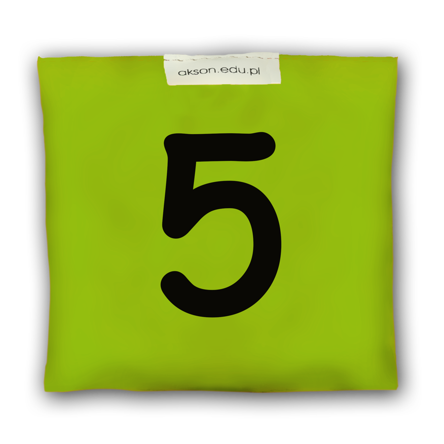 Woreczek gimnastyczny z nadrukiem z cyferką 5, szkolny Akson to wyjątkowa pomoc w czasie zabaw animacyjnych, dydaktycznych i zajęć korekcyjno-ruchowych.