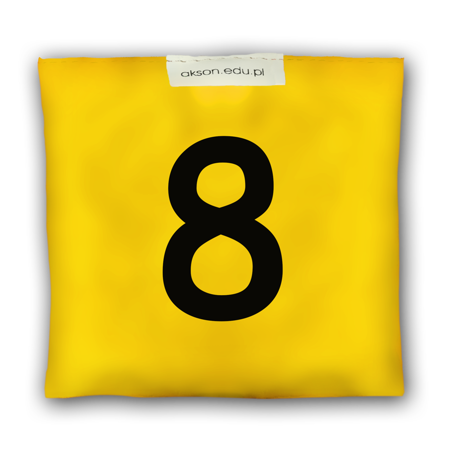 Woreczek gimnastyczny z nadrukiem z cyferką 8, szkolny Akson to wyjątkowa pomoc w czasie zabaw animacyjnych, dydaktycznych i zajęć korekcyjno-ruchowych.
