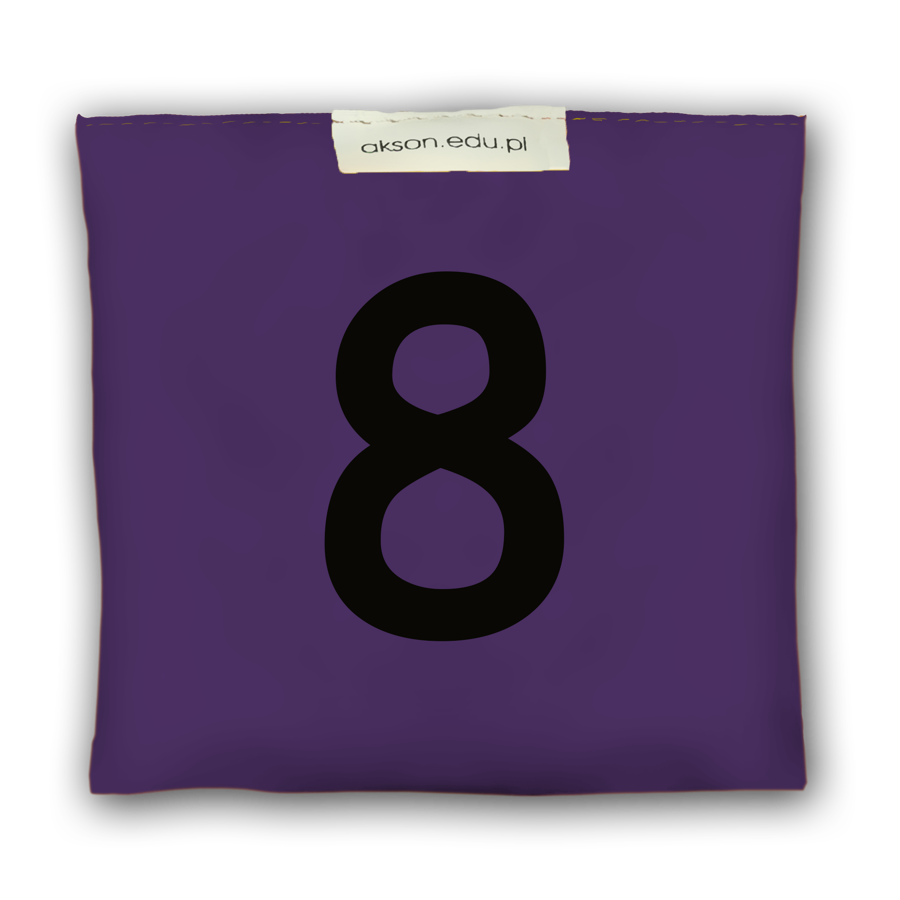 Woreczek gimnastyczny z nadrukiem z cyferką 8, szkolny Akson to wyjątkowa pomoc w czasie zabaw animacyjnych, dydaktycznych i zajęć korekcyjno-ruchowych.
