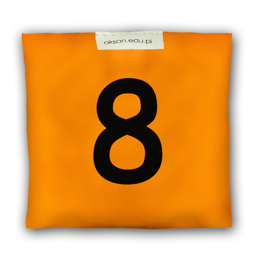 Woreczek gimnastyczny z nadrukiem z cyferką 8, szkolny Akson to wyjątkowa pomoc w czasie zabaw animacyjnych, dydaktycznych i zajęć korekcyjno-ruchowych.