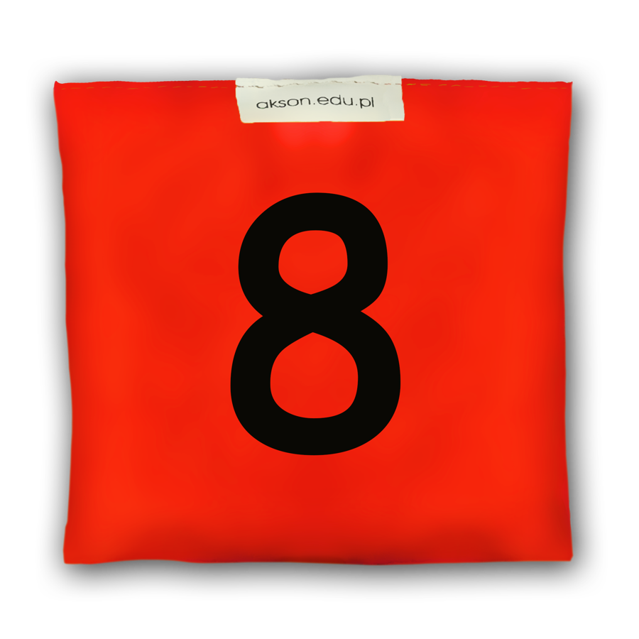 Woreczek gimnastyczny z nadrukiem z cyferką 8, szkolny Akson to wyjątkowa pomoc w czasie zabaw animacyjnych, dydaktycznych i zajęć korekcyjno-ruchowych.