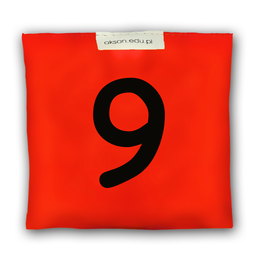 Woreczek gimnastyczny z nadrukiem z cyferką 9, szkolny Akson to wyjątkowa pomoc w czasie zabaw animacyjnych, dydaktycznych i zajęć korekcyjno-ruchowych.