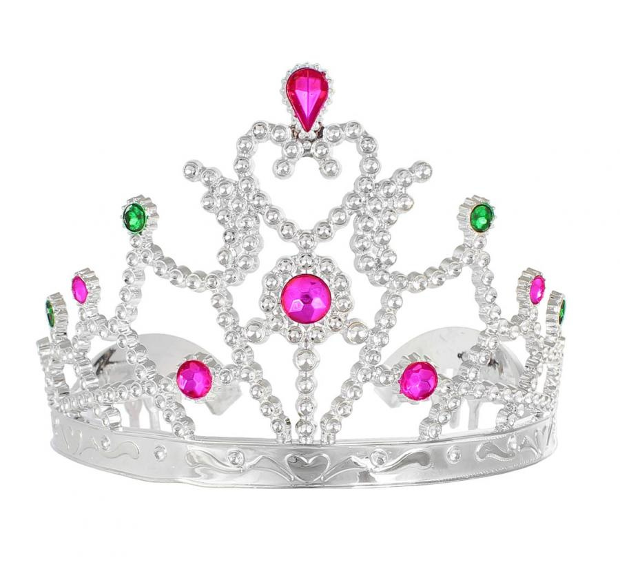 Diadem księżniczki srebrny z kolorowymi diamentami