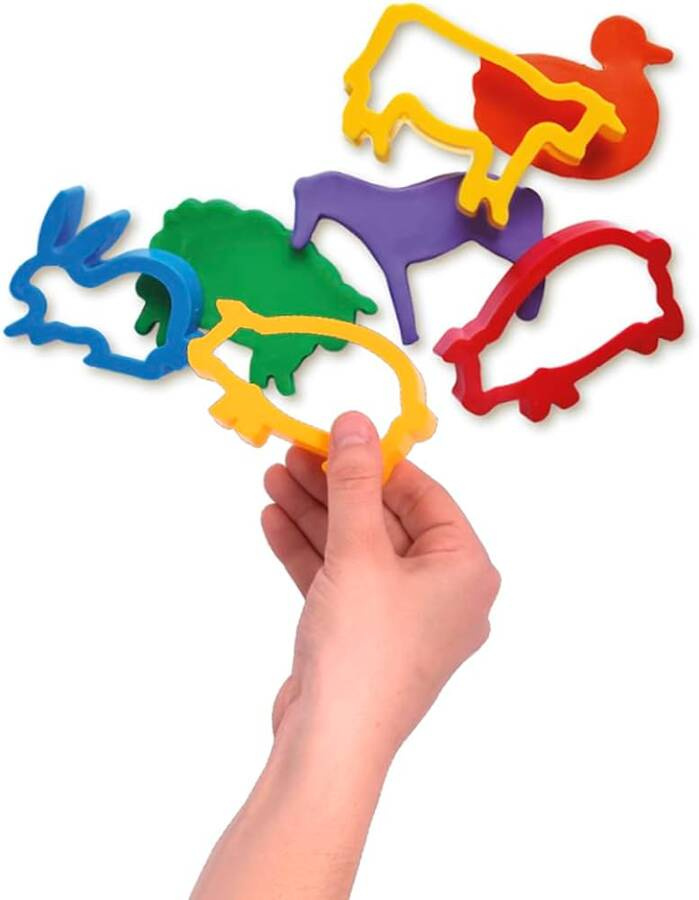 Różnorodne kształty: Zestaw zawiera 6 foremek na kształt zwierząt zamieszkujących gospodarstwo domowe: krowa, świnka, koń, królik, kaczka i owieczka.