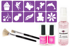 ZESTAW do tatuaży brokatowych (szablony, klej, odtłuszczacz, pędzelki)