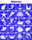 Szablony do tatuaży brokatowych ZESTAW 15 szt. mix Morze