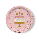 Talerzyki papierowe Happy Birthday różowe TORT 23 cm 8 szt.